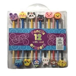 MATITA COLORATA + GOMMA ANIMALI -UNA-